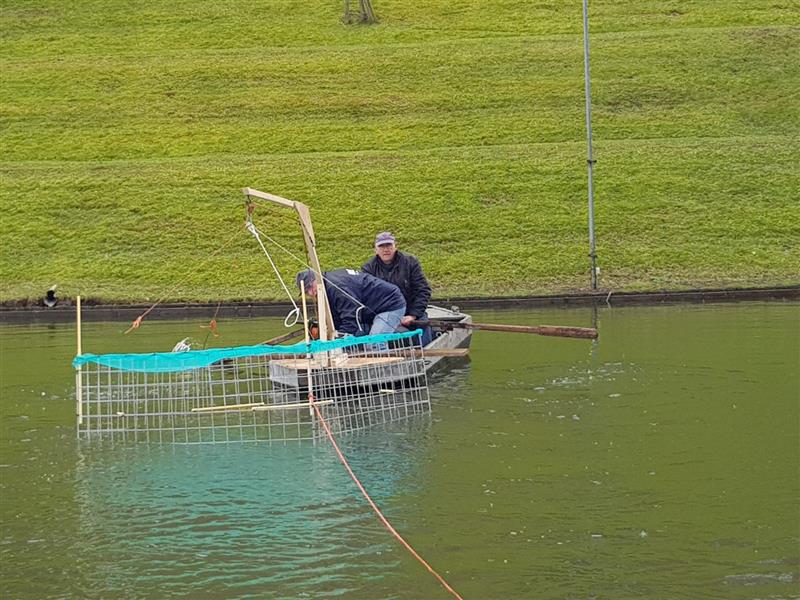 Deze week zijn al een aantal beschermkooien uit gezet ter schermen van de uitgezette witvis. Het bestuur heeft deze moeilijke beslissing moeten nemen, daar er tijdens het afvissen geen witvis werd gespot. De oorzaak ligt voor een groot gedeelte aan de bezoekende aalscholvers.